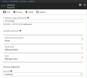 Se você deseja ter apenas uma sub-rede em sua rede virtual (o painel Rede virtual permitirá definir a primeira sub-rede chamada padrão), você precisa saber que a sub-rede da Instância gerenciada pode ter entre 16 e 256 endereços. Portanto, use máscaras de sub-rede / 28 a / 24 ao definir os intervalos de IP da sub-rede para a sub-rede padrão. Se você souber quantas instâncias, verifique se possui pelo menos 2 endereços por instância + 5 endereços do sistema na sub-rede padrão.